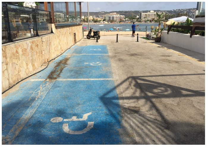 I have not even started the discussion as to whether there is disabled access parking yet. Parking is not a concern for us in Javea as Rob can push for some time and the Arenal beach area is relatively flat. However, I am aware that others are not so lucky and so the accessibility to a parking space nearby will be vital access information for some.