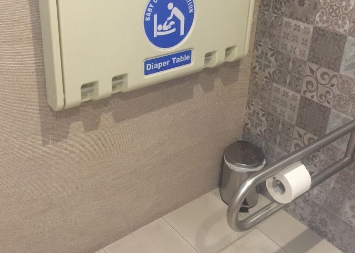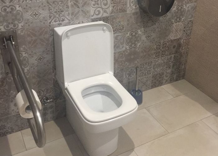 This restaurant has a designated disabled access toilet. It is where the normal toilets are at the far rear of the restaurant through the swing doors.